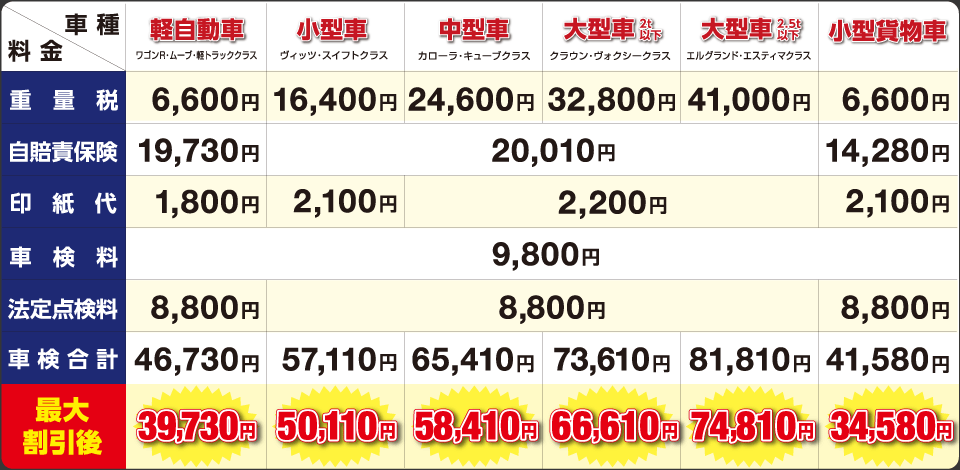 ※エコカー減税対象車、13年経過車両は上記金額と異なります。